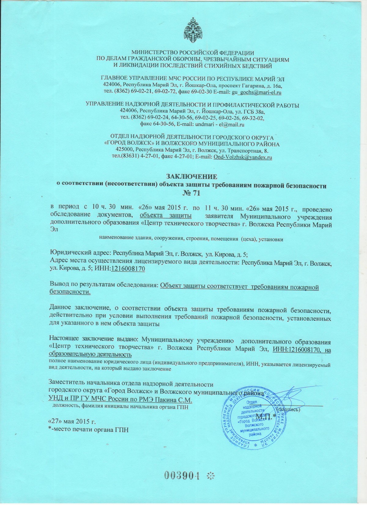 - Заключение о соответствии объекта защиты требованиям пожарной безопасности
