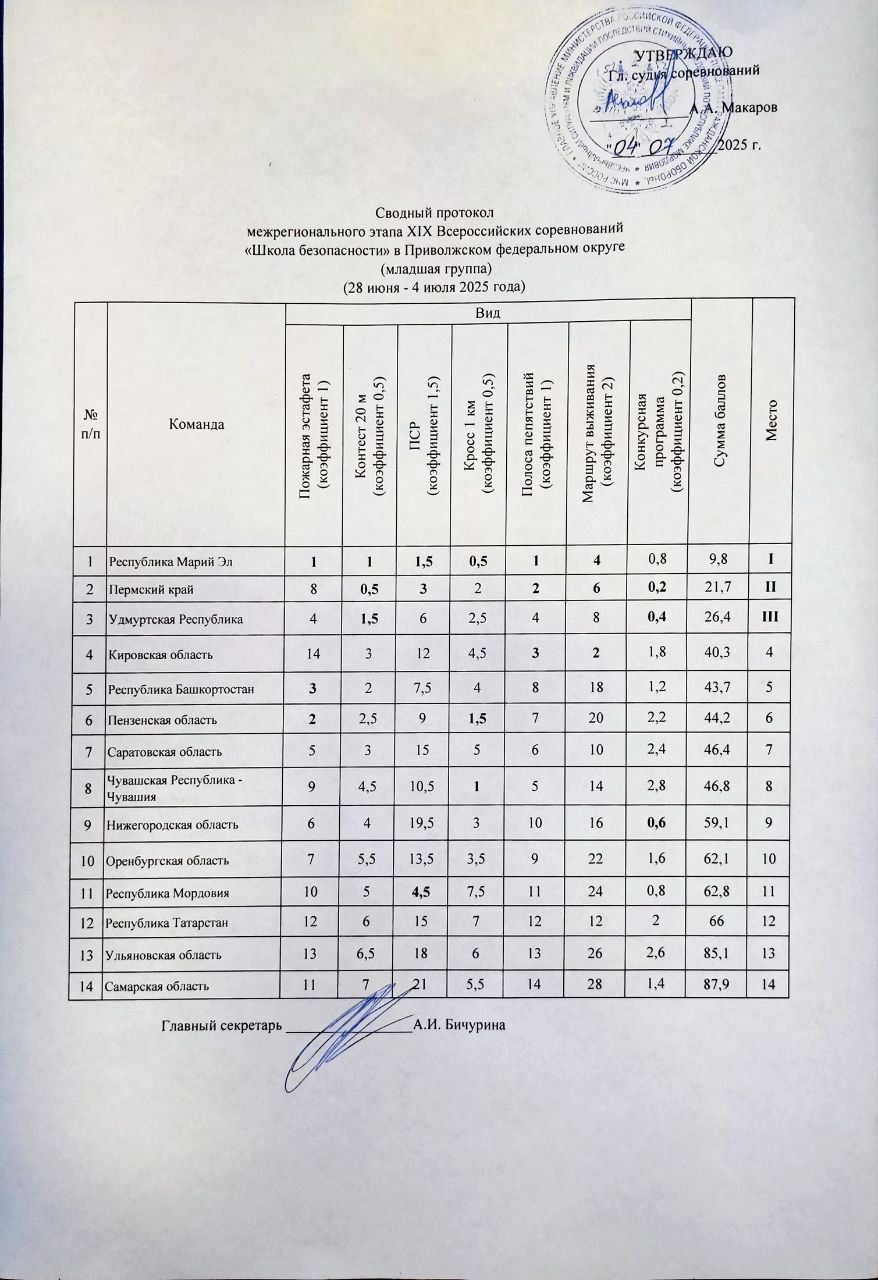 г.Волжска, заняли 1 место в младшей группе на межрегиональном этапе ХIX Всероссийских соревнований "Школа безопасности", проходивших в Республике Мордовия! Несмотря на сложные погодные условия наши спортсмены в нелегкой борьбе смогли обойти 17 команд ПФО и стать абсолютными чемпионами как в старшей, так и в младшей возрастных группах! Благодарим ребят: Мамасова Илью
